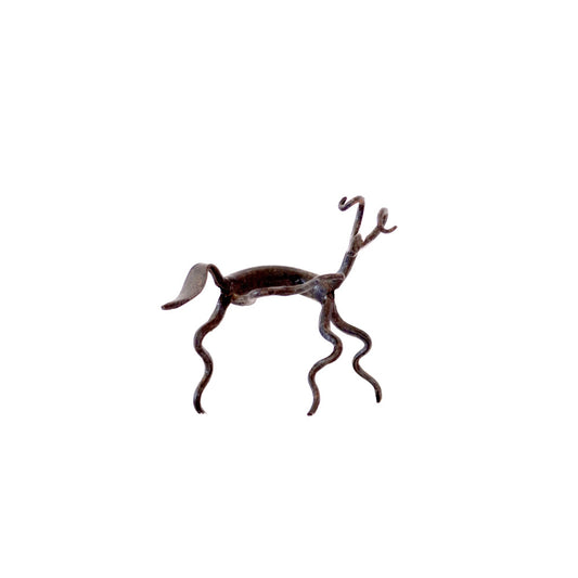 The Dancing Deer Figurine of Bastar Iron Art is a stunning piece of sculpture created by skilled artisans in the Bastar region of India. Crafted from iron, this exquisite artwork depicts a graceful deer in mid-dance, showcasing its elegant form and dynamic movement. The figurine exemplifies the rich artistic heritage of Bastar, renowned for its tribal artistry and metalwork. It's a captivating representation of nature's beauty and a testament to the craftsmanship of the Bastar ironworkers.