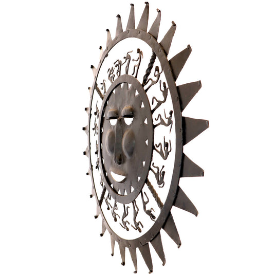 The Full Sun Faced Wall Hanging of Bastar Iron Art is a stunning piece of handcrafted ironwork originating from the Bastar region in India. This exquisite wall hanging features a radiant sun motif with intricate detailing and emanating rays. The craftsmanship exemplifies the rich tribal heritage and artistic skill of Bastar artisans. It serves as a captivating decor piece, adding a touch of rustic elegance to any space while celebrating the cultural and artistic traditions of the region.
