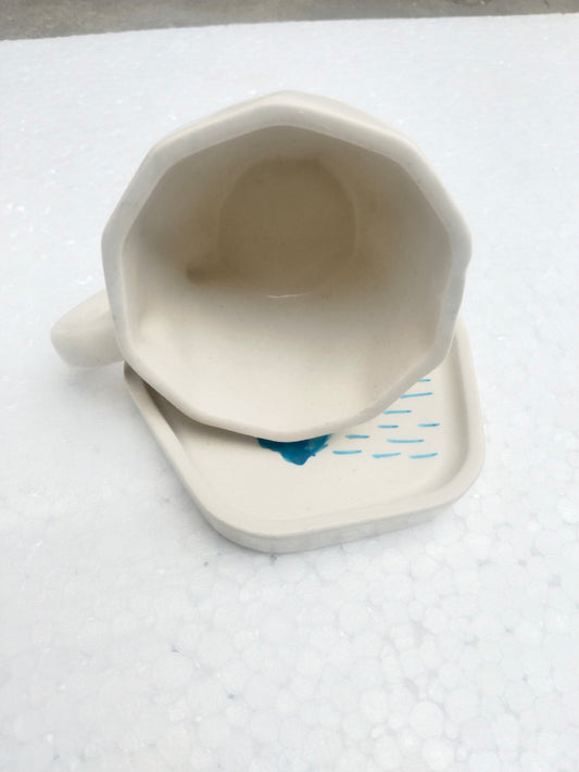 Add elegance to your table with this handmade Blue Pottery Cup Coaster featuring a stunning Black Bindu Print design.