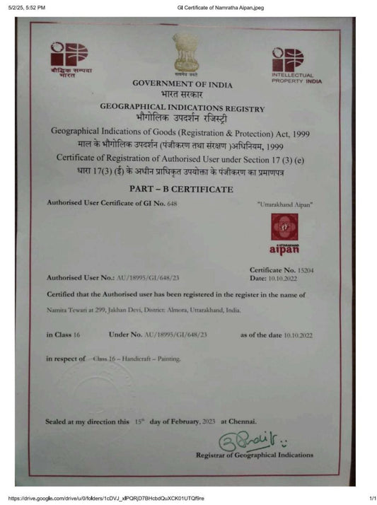This finely handcrafted Uttarkand Aipan Pooja Thali Set looks really beautiful. The Uttarakhand Apian Pooja Thali Set is a meticulously crafted and culturally inspired ensemble for religious ceremonies. This exquisite set features a beautifully adorned pooja thali (ritual plate) with intricate traditional designs, accompanied by essential religious accessories. Handcrafted in Uttarakhand, India, the set reflects the region's rich cultural heritage and devotion. Ideal for worship rituals and festivals, this carefully curated Apian Pooja Thali Set adds a touch of spirituality and elegance to sacred moments, making it a cherished addition to any religious ceremony.