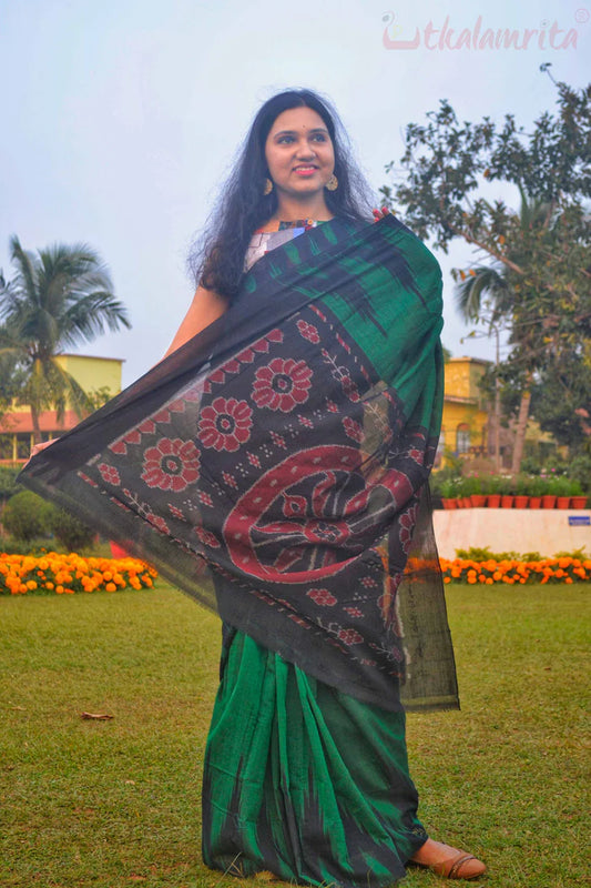 Embrace the timeless beauty of the Bottle Green With Red combinations in this stunning Odisha Ikkat Khandua Cotton Saree. Perfect for adding a touch of elegance to any occasion, this saree is a must-have for any fashion-forward individual.