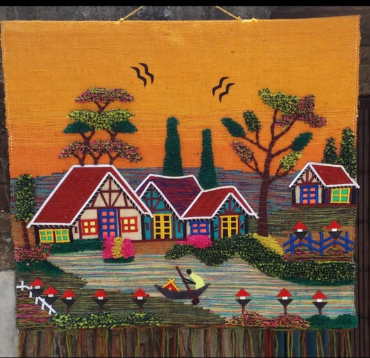 Transform your space with the Ghazipur Handmade Jute Wall-Hanging depicting Sweet Town. Artisan-crafted, this charming piece evokes a whimsical village with intricate detailing. The delightful scene, rendered in natural textures, adds a touch of quaint elegance to your decor, creating a captivating and heartwarming focal point for any room.