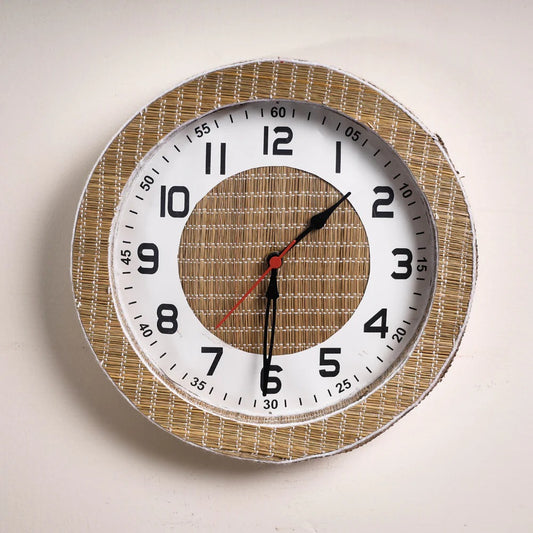 The Madur Kathi Wall Clock in exudes elegance with its minimalist design and rich colour. Crafted from natural madur kathi, a type of reed indigenous to Bengal, it boasts durability and eco-friendliness. The hue adds a touch of sophistication to any room, complementing various decor styles. Its sleek frame seamlessly blends into modern or traditional settings. This wall clock not only tells time but also serves as a timeless piece of functional art, perfect for adding character to your living space.