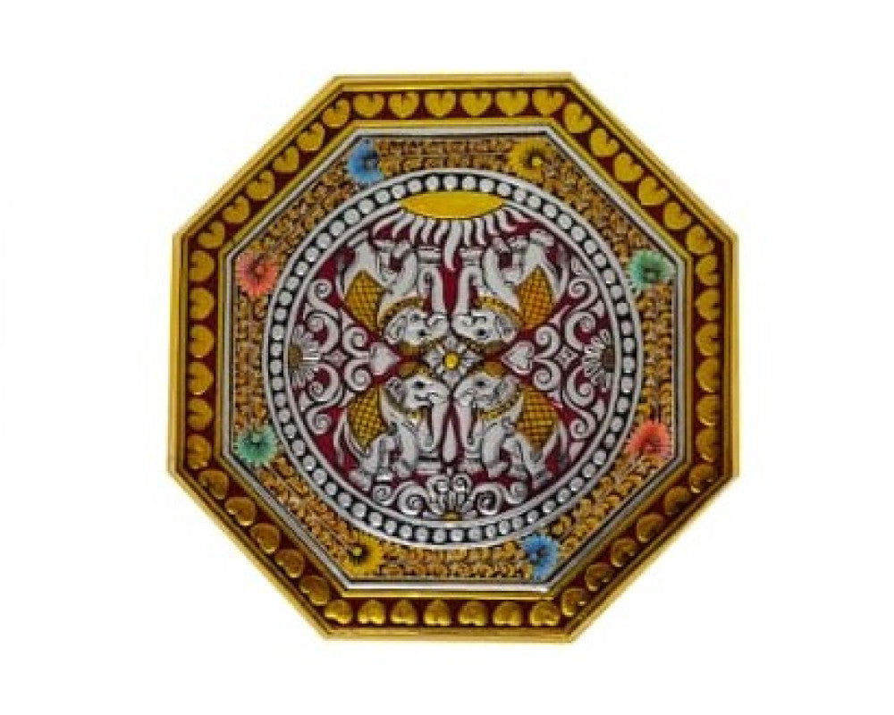 This wall hanging is a stunning and intricately crafted piece of traditional Indian art. Handmade by skilled artists from the Kinhal village in Karnataka, it features a beautiful blend of vibrant colours and designs. Made from eco-friendly materials such as wood and vegetable dyes, the wall hanging depicts various motifs inspired by nature & folklore