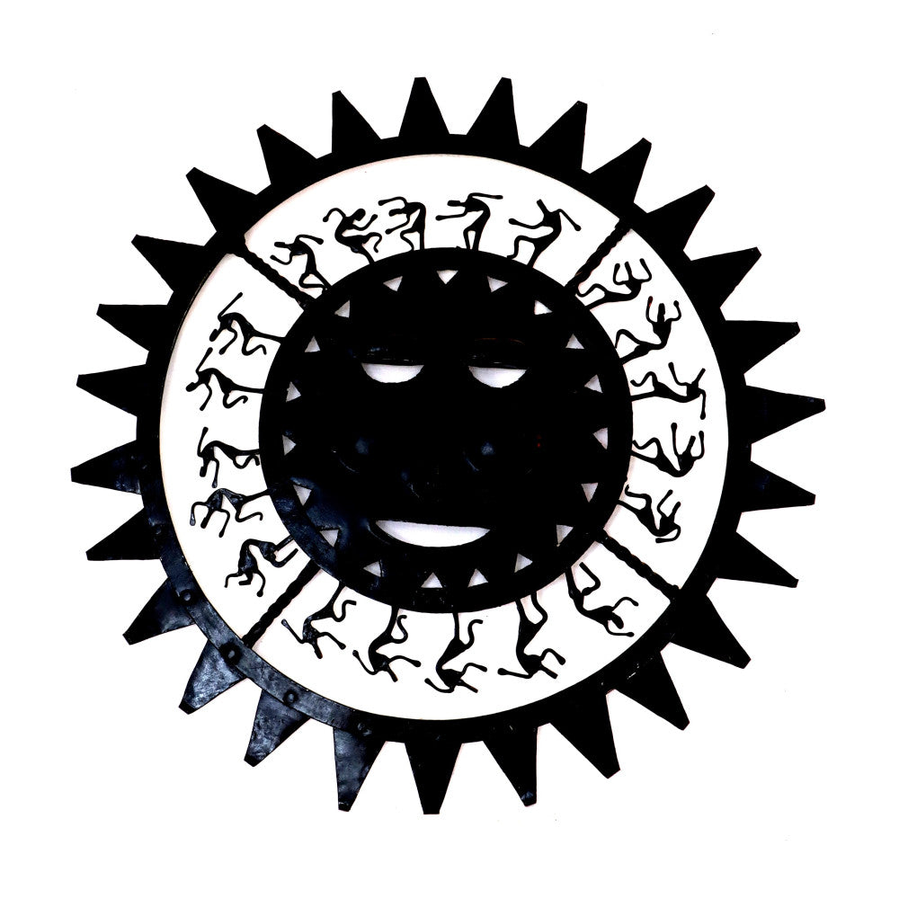 The Full Sun Faced Wall Hanging of Bastar Iron Art is a stunning piece of handcrafted ironwork originating from the Bastar region in India. This exquisite wall hanging features a radiant sun motif with intricate detailing and emanating rays. The craftsmanship exemplifies the rich tribal heritage and artistic skill of Bastar artisans. It serves as a captivating decor piece, adding a touch of rustic elegance to any space while celebrating the cultural and artistic traditions of the region.