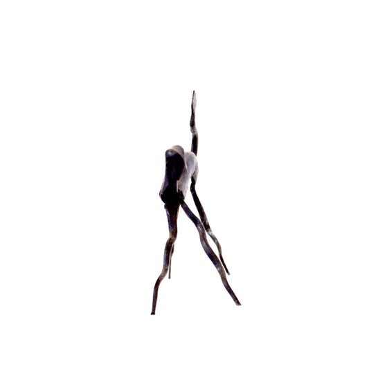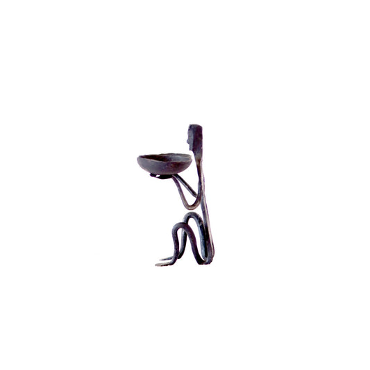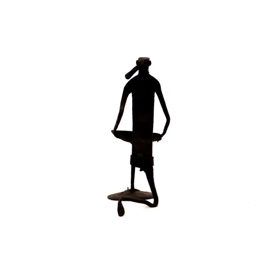 The Sitting Maadin Candle Stand of Bastar Iron Art is an exquisite piece of functional art created by talented artisans in the Bastar region of India. Crafted from iron, this candle stand features a beautifully designed figure sitting in a meditative posture, providing a unique and tranquil ambiance when candles are lit. The piece not only showcases the rich artistic heritage of Bastar but also serves as an elegant and practical addition to any home or decor, blending tradition with contemporary design sensibilities.