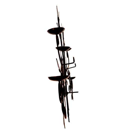 The Tree Hanging Candle Holder of Bastar Iron Art is a striking piece of functional artistry originating from the Bastar region in India. Handcrafted from iron, it takes the form of a tree with intricate branches designed to hold candles. This unique candle holder combines form and function beautifully, as it adds a touch of rustic elegance to any space while providing ambient lighting. It showcases the exceptional craftsmanship and artistic heritage of the Bastar region, making it a captivating addition to home decor.