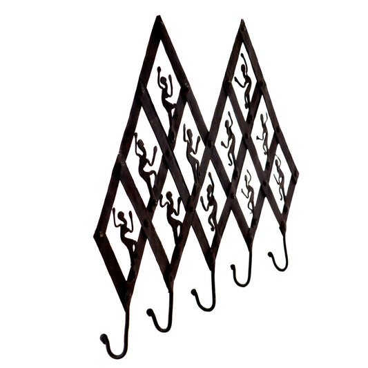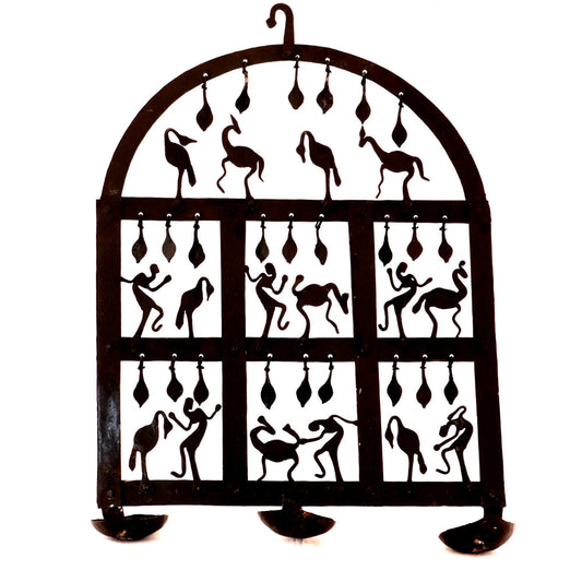 The Tribal Apparel Hanger of Bastar Iron Art is a distinctive and functional work of art created by talented artisans from the Bastar region in India. Crafted from iron, this hanger features intricate tribal motifs and designs that reflect the rich cultural heritage of the Bastar community. Its utilitarian design merges seamlessly with artistic expression, offering a unique way to hang and display clothing while celebrating the traditional craftsmanship of the region. This hanger embodies both practicality and aesthetic beauty, making it a striking addition to any home.