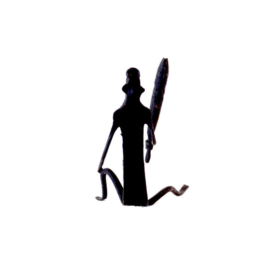 The Standing Maadin figurine of Bastar Iron Art is a striking work of art created by talented artisans from the Bastar region in India. Crafted from iron, this sculpture depicts a powerful Maadin warrior holding an axe and a stick, exuding strength and resilience. The artwork beautifully captures the essence of Bastar's tribal culture and traditions, showcasing the remarkable craftsmanship and heritage of the region. It serves as a testament to the rich artistic heritage and warrior spirit of the Bastar community.