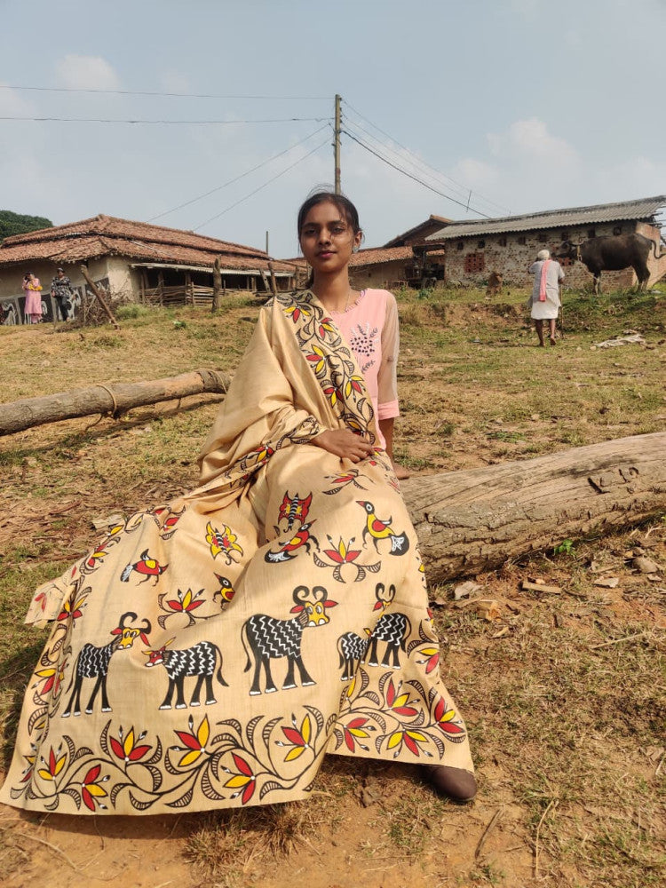 Bhagalpuri Silk Khovar Dupatta is a traditional Indian accessory made from Bhagalpuri silk, renowned for its vibrant colors and rich texture. The Khovar design features intricate embroidery or motifs that add elegance and cultural charm. Perfect for festive occasions or everyday wear, this dupatta combines comfort with exquisite craftsmanship, making it a stylish and sophisticated addition to any wardrobe.