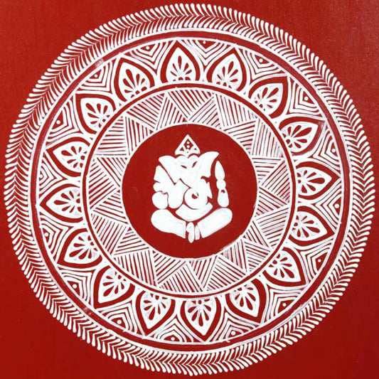 "Beautifully handcrafted Aipan Pooja Thali featuring traditional Kumaoni designs. Perfect for daily rituals, festive occasions, and spiritual gifting, it brings a touch of Uttarakhand’s rich heritage to your worship space."