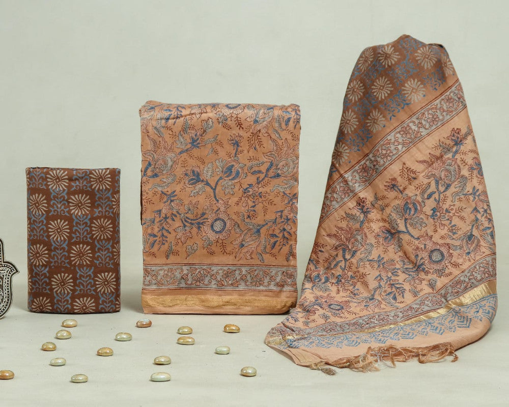 Bagru Hand Block Chanderi Silk Dress material Style 34