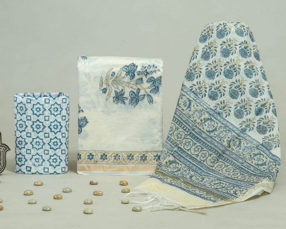 Bagru Hand Block Chanderi Silk Dress material Style 37