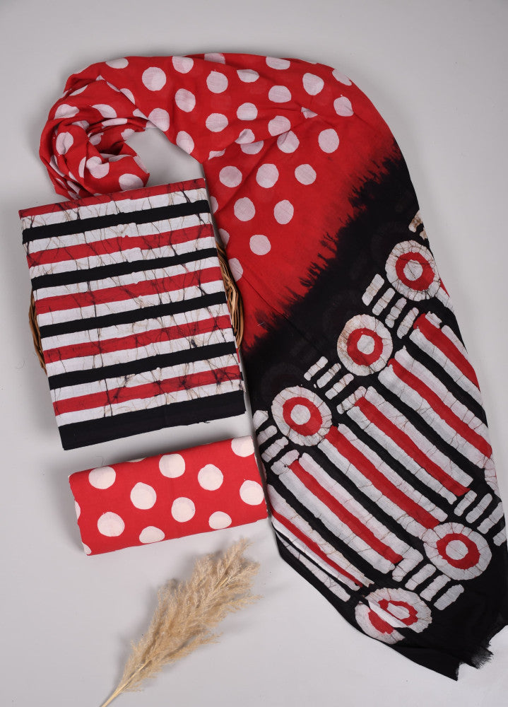 This exclusive multicolour bagru hand block printed cotton suit material features intricate traditional patterns, crafted from soft and comfortable cotton fabric. It includes a matching cotton dupatta, perfect for a stylish and elegant look. Ideal for festive occasions and cultural events.
