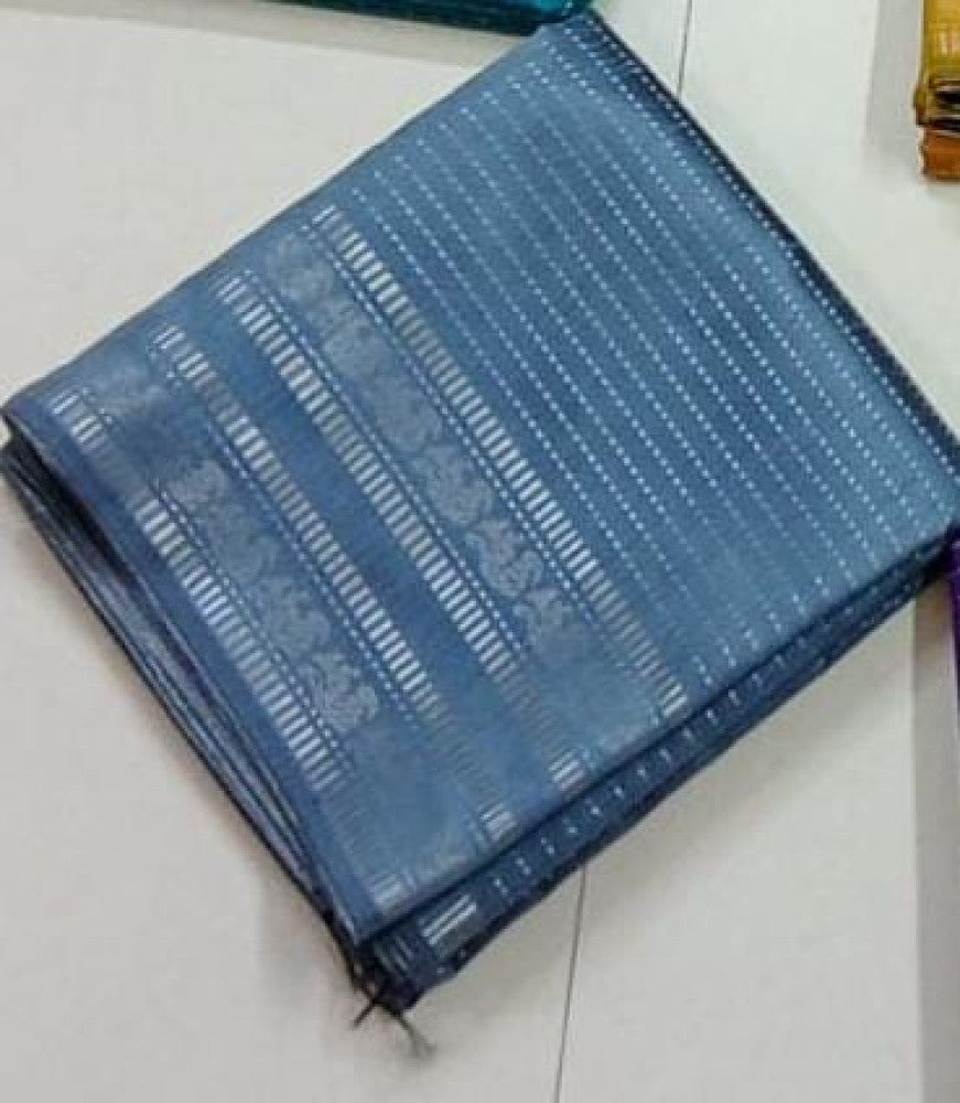 "Sophisticated and striking, this grey and purple Champa silk saree showcases a graceful fusion of subtle charm and royal hues, finished with a contrasting border that exudes timeless elegance."