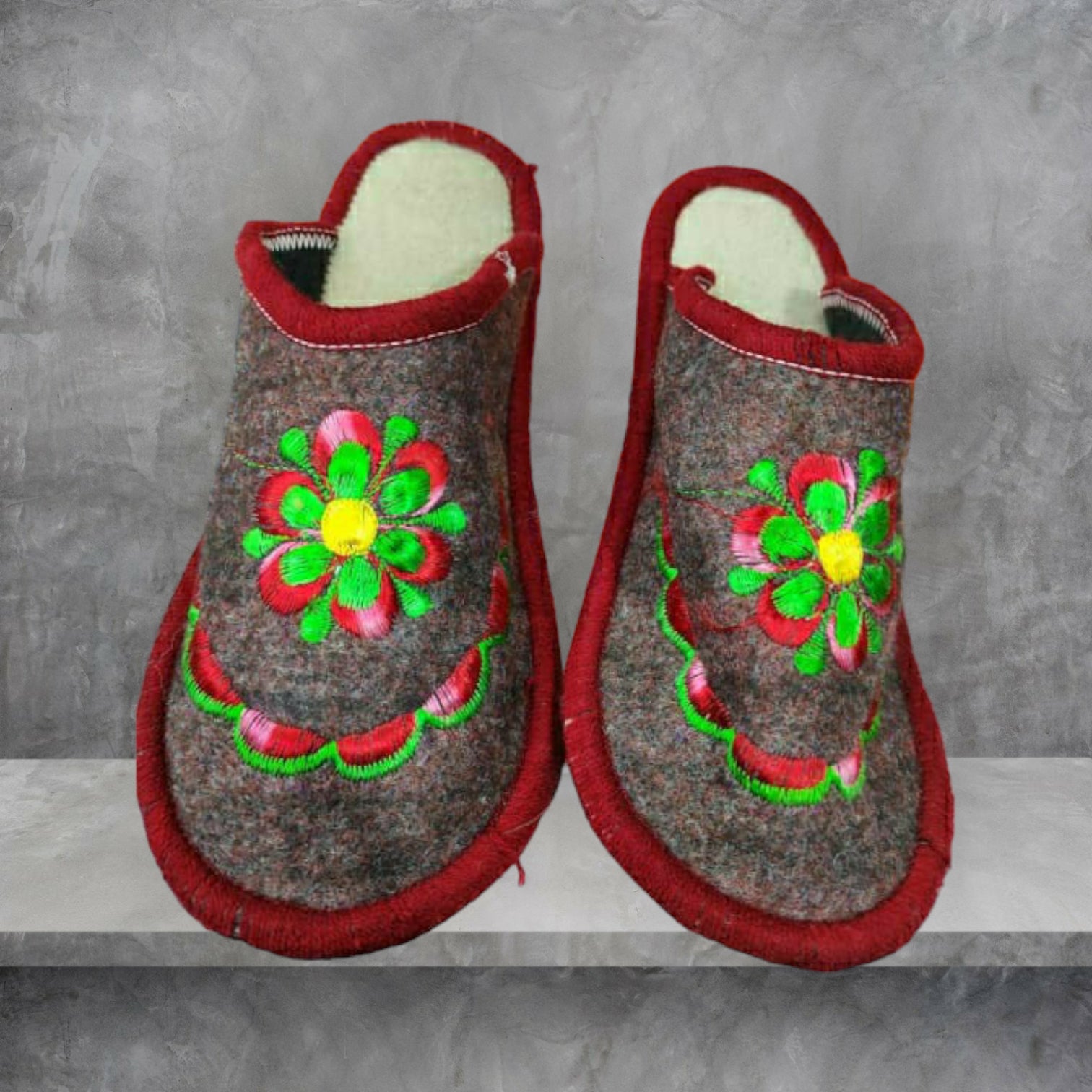 The Chamba Chappal is a traditional handcrafted slipper originating from the Chamba region in Himachal Pradesh, India. This pair, adorned in grey and orange hues, blends cultural artistry with contemporary style. The grey base provides a neutral, versatile foundation, while the vibrant orange accents add a striking contrast, enhancing its visual appeal. Made from high-quality leather and detailed with intricate embroidery, these chappals are not only comfortable and durable but also a testament to the region's rich artisanal heritage.