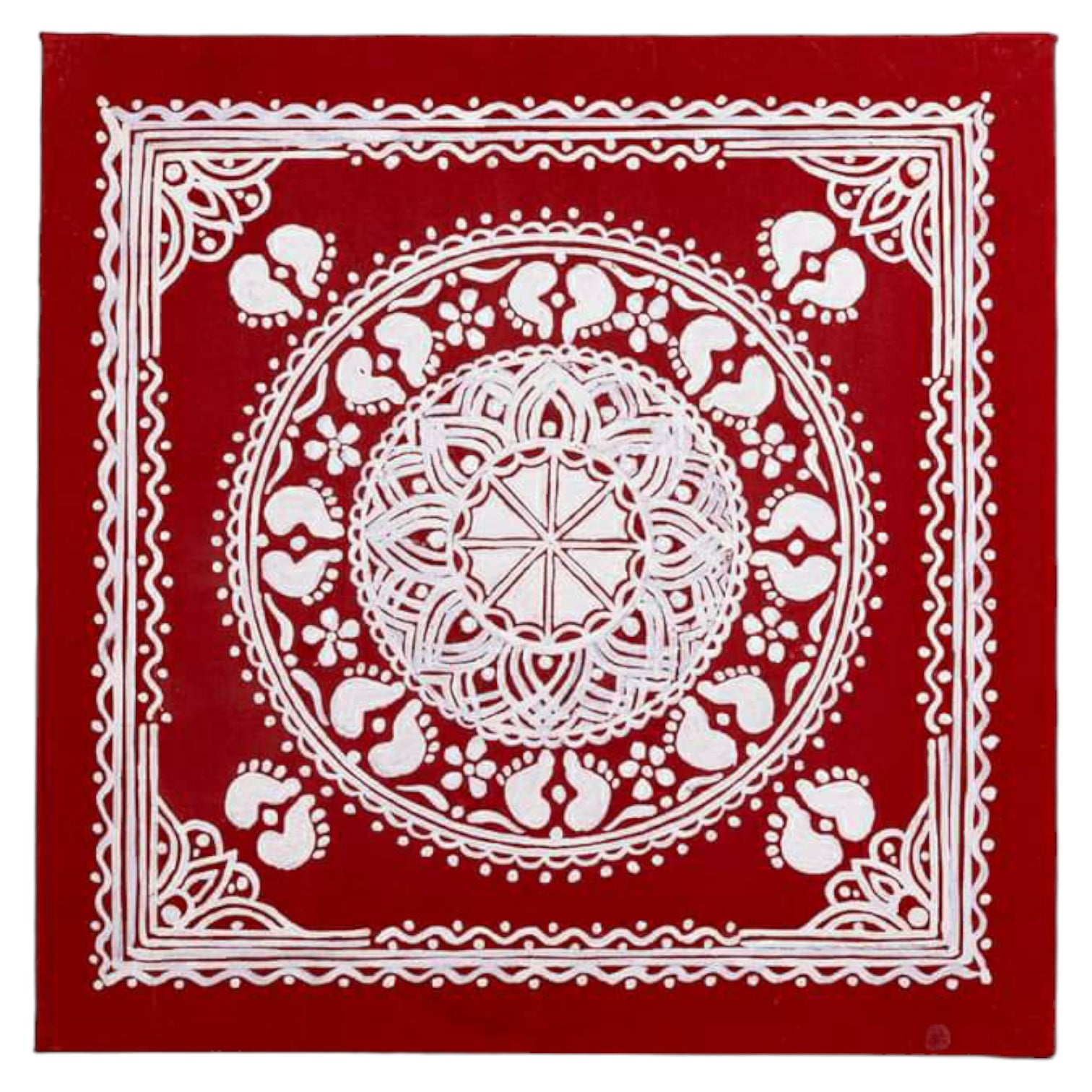 Uttarakhand Apian Mandalam wall Aipan Art is a traditional form of geometric mural painting in the Indian state of Uttarakhand. Characterized by intricate patterns and vibrant colors, Aipan Art adorns walls and floors during festivals and auspicious occasions. Reflecting the rich cultural heritage of Uttarakhand, these hand-drawn designs often feature symbols of prosperity and spirituality. Aipan Art holds deep cultural significance, serving as both a decorative and symbolic expression of local traditions and beliefs in the picturesque region of Uttarakhand.