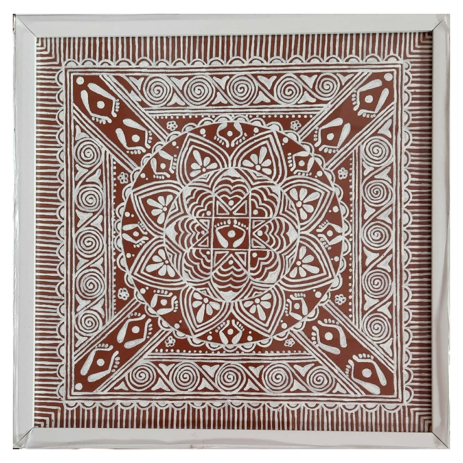 Uttarakhand Apian Mandalam Wall Aipan Art is a traditional form of geometric folk art originating from the Indian state of Uttarakhand. This intricate and colorful artistry is created on walls, floors, or courtyards during festivals and celebrations. Characterized by symmetrical patterns and vibrant hues, Aipan reflects the cultural richness of Uttarakhand. The designs often convey auspicious symbols, folklore, and spiritual significance, making it a cherished cultural heritage that adds a festive touch to the region's homes and public spaces.