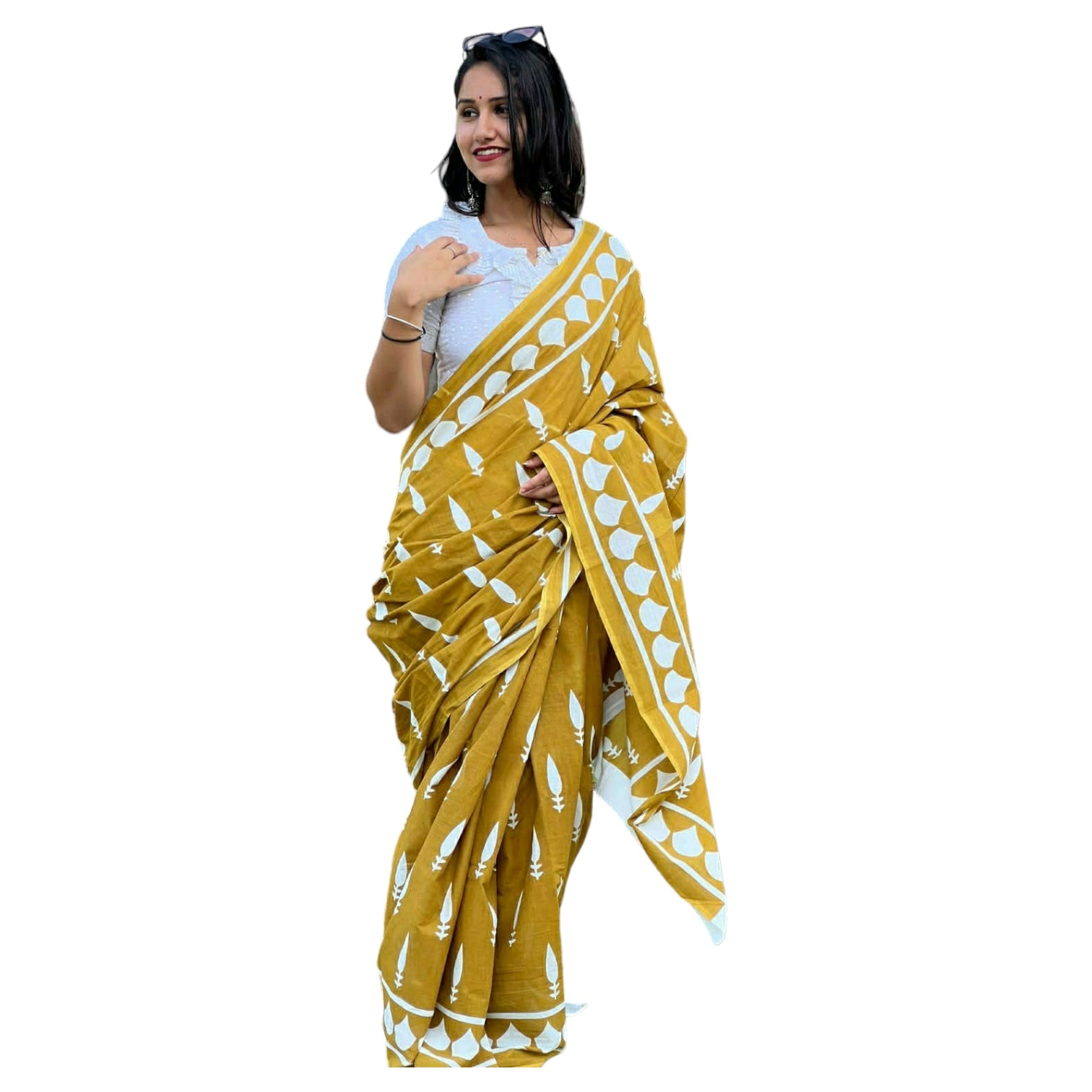 The Mustard Yellow & White Bagru Print Saree is a vibrant fusion of tradition and modernity. Its mustard yellow base is adorned with intricate white Bagru prints, showcasing the timeless beauty of Indian craftsmanship. The rich mustard hue symbolizes warmth and vitality, while the white accents add a touch of elegance. This saree exudes grace and sophistication, making it perfect for both formal occasions and casual gatherings. Its intricate design and vibrant colors make it a standout piece in any wardrobe, embodying the essence of timeless style.