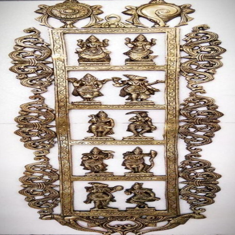 Add a touch of divine beauty to your walls with our New Brass Dashavatar Wall Hanging Matte Finish. Crafted from pure brass and featuring intricate detailing, this wall hanging depicts the ten avatars of Lord Vishnu, bringing blessings and protection to your home.