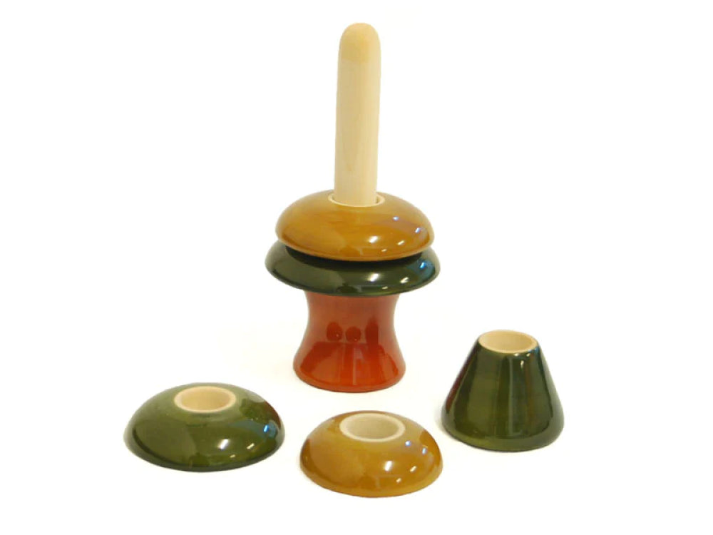 The Pine Tree Stacker is a charming wooden toy handcrafted in Channapatna, India. It consists of a set of colorful, stackable pine tree-shaped pieces, each with a hole in the center for stacking. The toy is known for its eco-friendly materials and non-toxic paints, making it safe for children. It encourages fine motor skills and imaginative play as kids stack and arrange the trees in different ways, creating a delightful and educational playtime experience.
