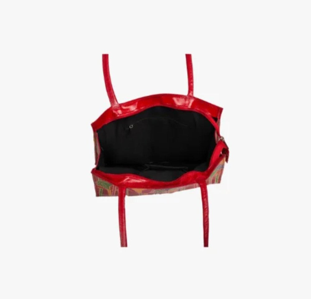Shantiniketan Genuine Leather Handcarfted Floral Red Shopping And Tote Bag For Woman