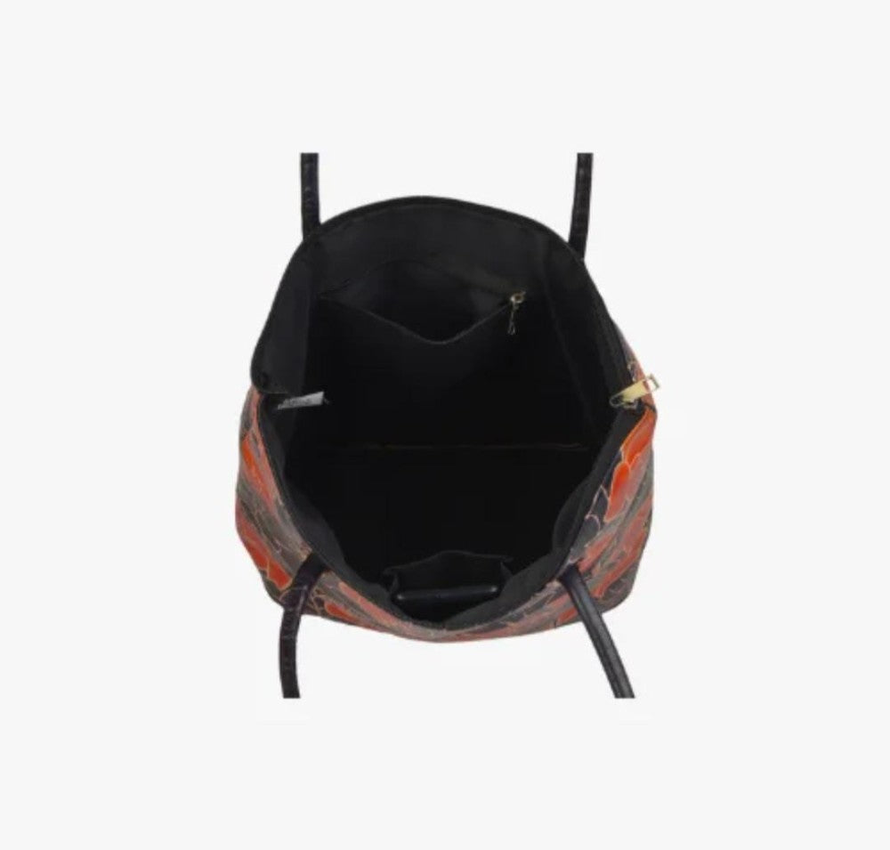 This Shantiniketan genuine leather orange tote bag for women exemplifies the seamless blend of traditional craftsmanship with modern functionality. Handcrafted by skilled artisans, its vibrant orange leather is elegantly finished and accented with subtle detailing. Designed with a spacious interior and an adjustable shoulder strap,