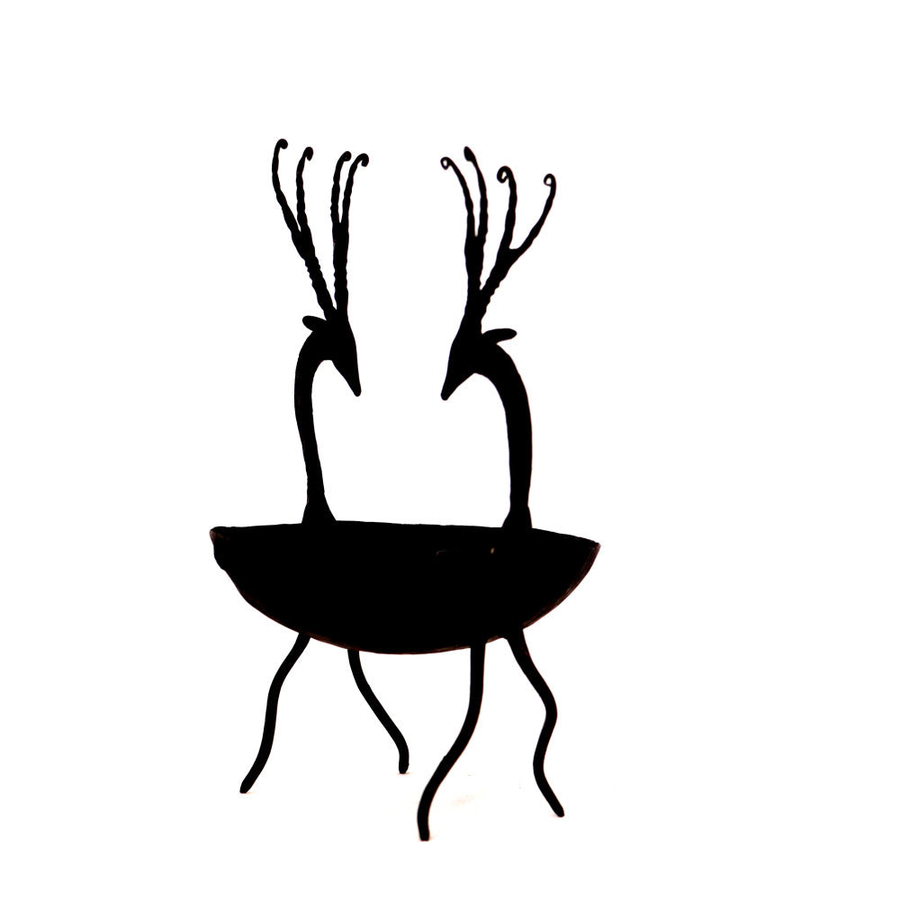 The Twin Goat Candle Stand from Bastar Iron Art is a stunning handcrafted piece that reflects the rich cultural heritage of the Bastar region in India. Made from iron, this exquisite candle stand features two intricately designed goats standing gracefully, each holding a candle holder. The rustic yet elegant design exemplifies the mastery of Bastar's skilled artisans, and the piece adds a touch of rustic charm and functionality to any space while celebrating the unique artistry of the region.